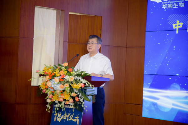 上午10點(diǎn),揭牌儀式在華南生物藥品創(chuàng)新研究院一樓學(xué)術(shù)報(bào)告廳正式舉行。該儀式由華南生物藥品創(chuàng)新研究院副院長(zhǎng)、華南農(nóng)業(yè)大學(xué)教授、博導(dǎo)唐兆新主持。