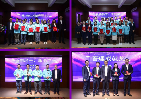 2019年,涌現(xiàn)出一批批表現(xiàn)優(yōu)秀的管理人員、基層人員與團(tuán)隊(duì)進(jìn)行了表彰頒獎(jiǎng)?,F(xiàn)場(chǎng)頒發(fā)的獎(jiǎng)項(xiàng)依次是:華南生物新星獎(jiǎng)、優(yōu)秀員工獎(jiǎng)、優(yōu)秀干部獎(jiǎng)、服務(wù)衛(wèi)士獎(jiǎng)、金甲衛(wèi)士獎(jiǎng)、管理成就獎(jiǎng)、管理卓越獎(jiǎng)、優(yōu)秀專家獎(jiǎng)、最佳支持團(tuán)隊(duì)獎(jiǎng)、攻堅(jiān)克難團(tuán)隊(duì)獎(jiǎng)、最佳保質(zhì)保量團(tuán)隊(duì)獎(jiǎng)、王者之師團(tuán)隊(duì)獎(jiǎng)。