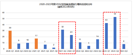 跟蹤2020年-2023年的數(shù)據(jù),很明顯H9的發(fā)病有趨同性,主要集中在每年冬春季節(jié)。